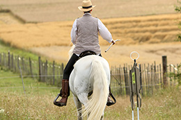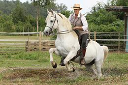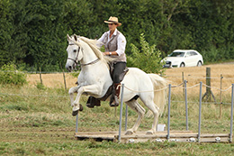 im Centre Equestre Camarguais in Horb am Neckar. Der "Working Marchador" besteht aus drei Teilen: Dressur, Marchaprüfung und Rinderarbeit. Beim "Tag des Pferdes" messen sich die Teilnehmer mit ihren Pferden in einem Punktesammel-Trail und einem Gelände Speedtrail.