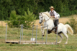 Ich verfüge über einen kompletten Trailparcours mit Stier, Brücke, Tor uvm., der zu den mobilen Wochenendkursen mitgebracht werden kannBei diesem Kurs erarbeiten wir das Bewältigen verschiedener Trailhindernisse, wie sie z.B. im Working Equitation Trail vorkommen. Der Kurs ist für Einsteiger, die einfach mal in die Trailarbeit reinschnuppern möchten, genauso geeignet, wie für trailerfahrene Reiter, die ihr Können verbessern möchten.
