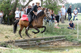 Die Arbeit an den Hindernissen ist eine sehr ruhige Arbeit, um den Pferden keinen Stress zu machen und sie darauf vorzubereiten, die Hindernissse ruhig zu bewältigen, auch wenn das Anreiten im Galopp erfolgt. Zum Abschluss kann jedes Reiter/Pferd-Paar den kompletten Parcours bewältigen.