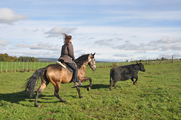 Egal, ob als mobiler Einzelunterricht auf eigenem Pferd, Unterricht auf unseren Pferden oder in Wochenendkursen: wir geben gerne unsere Erfahrungen in den Disziplinen der Working Equitation weiter. Dressur, Trail, Rinderdisziplinen sind Aufgabenteile, deren Vorbereitung für Reiter und Pferd viel Abwechslung und Spaß bedeuten.